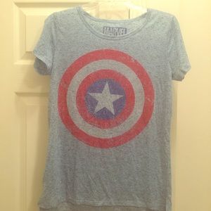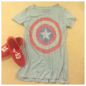 NWOT cute light blue graphic tee with a super soft fabric and a scoop collar and short sleeves. The tee has the Captain America shield graphic on the front. Excellent condition, never worn just tried on & removed tag. Bundle for a discount!