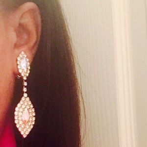 Iridescence Rhinestone Earrings these earrings are clip on and in excellent condition no stones missing and no tarnishing perfect for prom goes great with the evening gown I have listed!