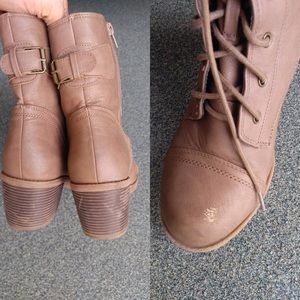 Beige leather combat boots