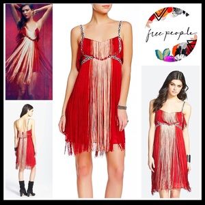 FREE PEOPLE RED FRINGE SLIP PARTY DRESS