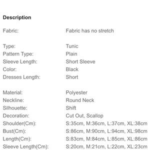 Cute black scallop short sleeve dress. Pair it with your favorite pearls and patent heels for a classy night on the town! Fabric has some stretch and a bit of weight to it, so no show through, but still light enough for the warmer months. Note: Fitted style. Runs small. Sizing up is recommended. Bundle and save!