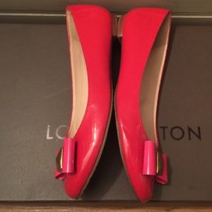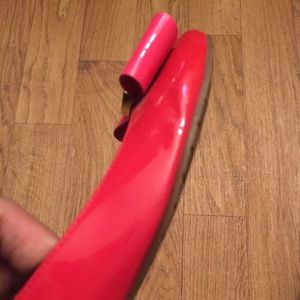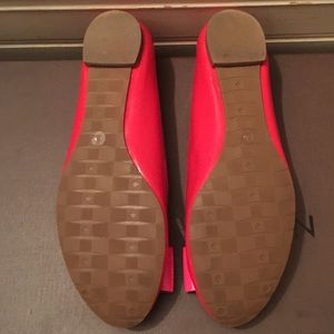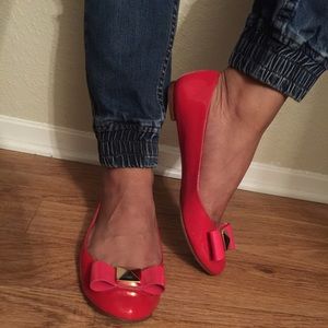 Kate Spade Tula flats in maraschino red patent with lipstick pink patent bow and iconic Kate Spade gold hardware detail. Beautiful condition except for one tiny spec see pic #8 you can't even notice it but it's there. Used for a couple of hours.