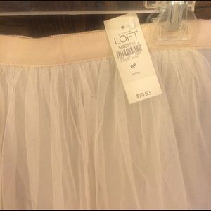 Adorable tulle skirt from Ann Taylor Loft! Underlay made of rayon, feels like soft, stretchy, breathable cotton. Overlay made of nylon, looks like soft tulle. Never worn, tags still on, and in perfect condition. Fits true to size.