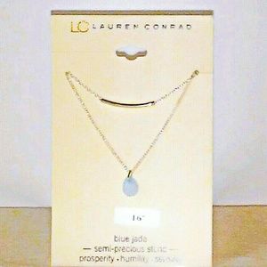 Brand new with tags! This is the gorgeous Kate Spade Wristlet known as the Kate Spade Yulie Bag in baby blue hydrangea with matching pompom bagcharm keychain and necklace! This beautiful three piece set is perfect for spring and matches almost everything! This Kate Spade bag is made of fine high quality leather with pretty gold polka dots around the trim that are a lovely accent! The necklace features matching baby blue jade on a 16 inch chain by designer Lauren Conrad. Fabulous!