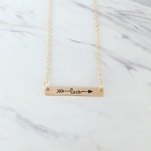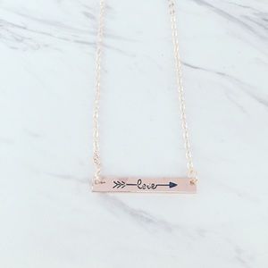 ⭐️⭐️⭐️⭐️⭐️ 5 star rated! Love bar necklace with arrow detailing in your choice of 14k rose gold plated, 14k gold plated, or Sterling silver [sold out] plated. Want more than one? Ask for a custom bundle!