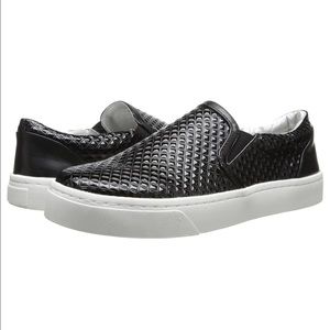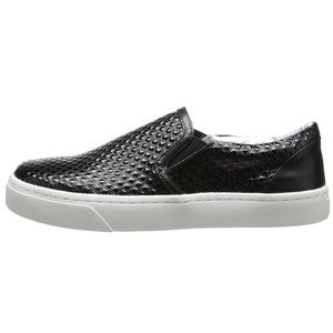 Black Slip On Sneakers perfect for any casual attire! Manmade vegan leather and vegan animal hair uppers, rubber sole, lightly cushioned insole with padding around heel for all day comfort, and dual elastic goring panels. Contrast heel counter and coordinating trim at tongue. Wraparound midsole with toe bumper.