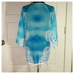 💖ONE LEFT SIZE L💖Blue Kimono with white tassels