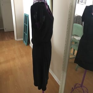 Comfortable and flirty little black v-Neck dress with elastic waistband and killer detail on the back. Slashed pieces for a revealing back. Keep cool this summer with this dress. Good pre-loved condition. Please feel free to ask any questions and make any offers :]