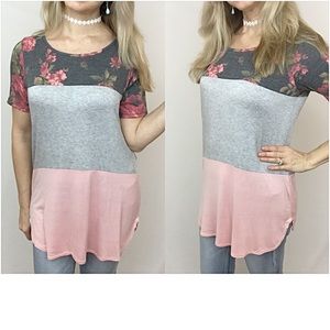 Blush Floral Colorblock Tunic Top Sold