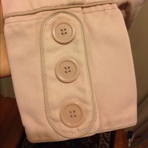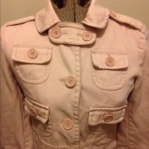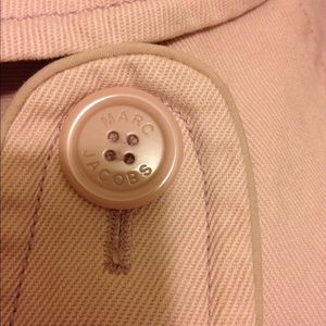 Lovely pink coat by Marc Jacobs. Size xs. Made in Poland. Machine wash, tumble dry. It has two open pockets and four buttoned pockets. It has buttons for closure. All the buttons are present, but they could potentially use thread reinforcement, they seem a little loose from use. All the buttons are stamped MARC JACOBS. The coat is lined. Nicely made, stylish coat!