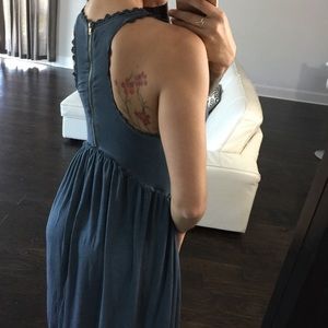 Such a flattering dress and the perfect length. Pretty vintage blue wash. I dare you not to twirl in this π Butter soft fabric with a light stretch. Zip up at back of neckline. Cute crochet laced detail at neckline and waist. Modeling size small.