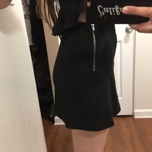 Super soft suede-feel pull-on skirt in black with a zipper opening on the side and a slight stretch waistband.
