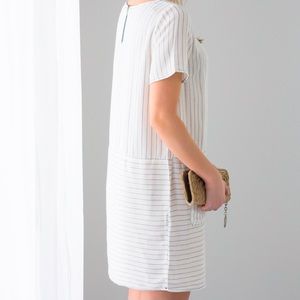 ◽️Easy breezy summer shift dress in a classic Hamptons style ⚓️ White with blue stripes, 2 front pockets, back zipper, flattering fit. Lightweight and comfy, linen/cotton.