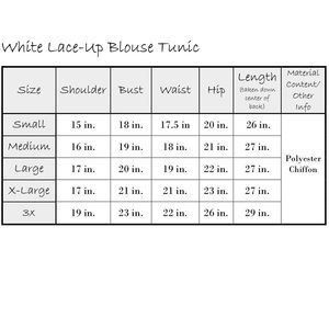 Spring Perfection Tunic; lace up front; Tunic length; high quality hook and Eye feature; extended sizes available; Price firm unless bundled, no offers please. This does run small, Please assure your proper size based on appropriate measurements given in the measurement chart.