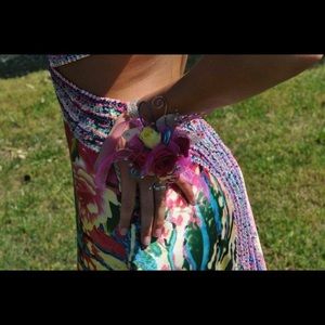 Gorgeous prom dress! It was worn 2 times and still looks good as new. It will fit sizes 0-4. This dress was purchased from Merle Norman.