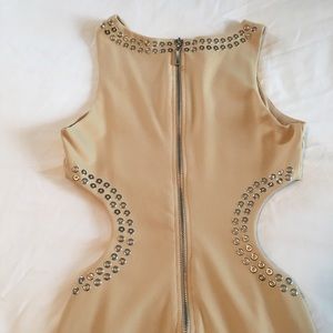 NWOT Bebe - Nude Studded Cut-Out Mini Dress