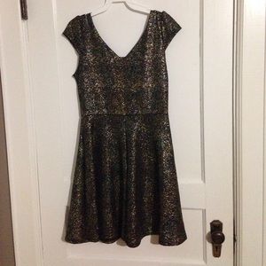 Very soft skater style dress! Color is yellow gold. No glitter escapees here! Jewels center neck are sewn down. 90% Polyester & 10% spandex. I can wear a size large & Im 5'2, 36A bust and 153 lbs of solid fluff! Lol new without tags. Holiday dress or summer party dress. Dress up or down. Cheers! **Purchased for boutique all came in one poly bag so no retail tags bc I don't have tags but both are NEW**