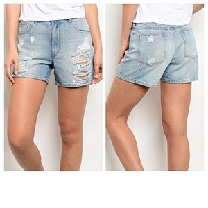 Perfect go to shorts this season. Lightwash distressed denim with a relaxed fit. Zip button closure 100% cotton. Please read size details