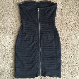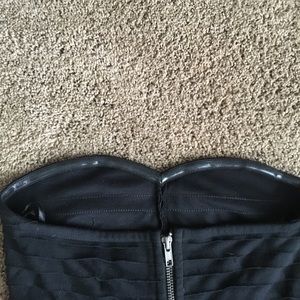 Silence + Noise strapless dress with slight sweet heart neckline and tiered details. Excellent condition. I wore this once, maybe twice. Full length Back zipper with hook closure on back. 74% polyester 23% rayon 3% spandex