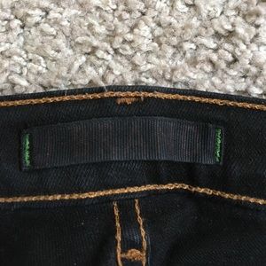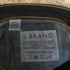 Blue Indigo (looks nearly black) bootcut J Brand jeans on very good condition. Size 29, regular inseam (no hemming or altering). Some very slight fraying on the back of the bottom of the right bottom pant leg (as you can see in the picture). Despite that, they are like new - worn just a few times!