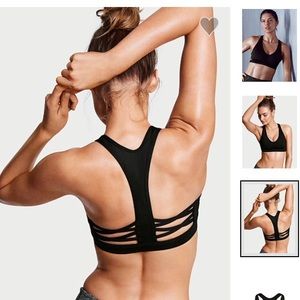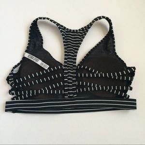 NWT VS Sport caged racerback sports bra. Size large in black and white strips. Minimum support, maximum style. Removable pads. My favorite of VS's sports bras, comfortable and sexy in the gym. Other colors available as well, bundle and save! ๐