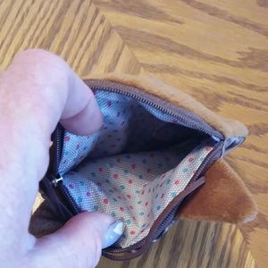 Cat zipper coin purse w/ leather shoulder strap. 22" leather rope strap. Silky texture fabric on front. Plush frabric on back. 5"W x 4.25"H. NWOT