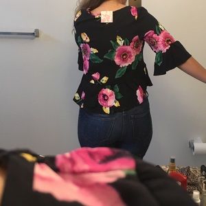 Semi crop top high low floral top.. super cute with some high waisted black jeans and a pair of nude sandals. Fresh fabric perfect for summer! 100% polyester. NWT. ONLY 1/3!! Act now!