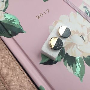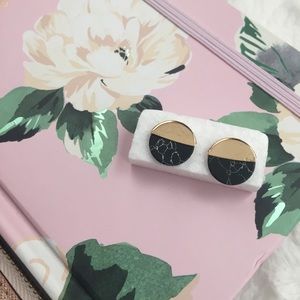 Cute stud earrings with gold top and marble bottom. The gold part of the earrings is not as smooth (can sort of see in first picture) First two pictures are my own. NO MODELS, NO TRADES.