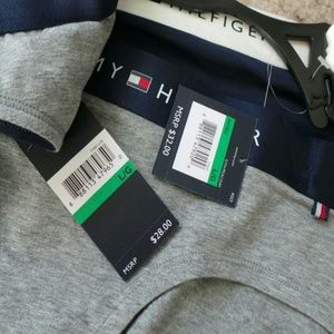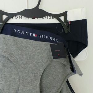 Package includes; Triangular cotton bracelet with elastic logo band , removable cups and can also be pulled over the head or with loops and Two hipster underwears with an elastic waistband.Grey and navy blue. These are Authentic Tommy Hilfiger items.
