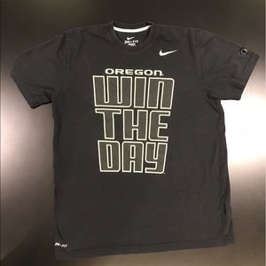 U of O Win the Day black and neon green (yellow?) t-shirt. Lettering is a little worn (see pic)