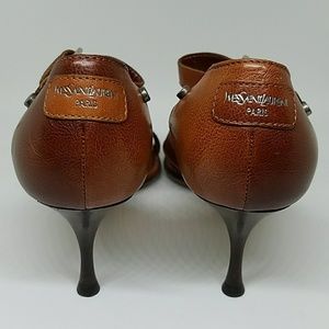 Gorgeous 💕Authentic Yves Saint Laurent Leather Shoes. Heel is Approximately 3 1/4". These Were Purchased at An Outlet Store Thus the Black Line Through Name. They Do That so You Can Not Return to a Regular Store. These are in Very Good Condition. Very Lightly Worn. Color is a Saddle Color. Any Shading or Marks in the Leather are Natural Characteristics and Not to Be Considered Flaws. These are Absolutely Stunning!