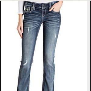 Brand new with tag. Slightly distressed Light blue wash with rhinestone embellishments. Rise 7" waist 28" length 33". A bit stretchy material 73% cotton 14% rayon 11% polyester 2% elastane. No trades 🌷
