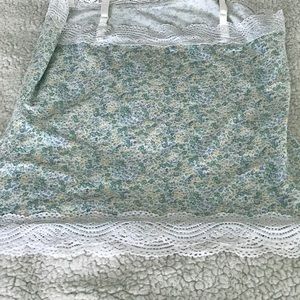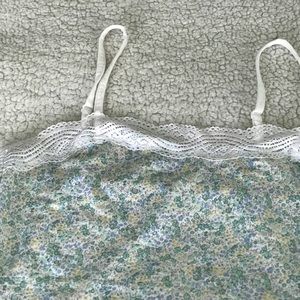 Camisole top by Ann Taylor in a size Small. Has a flower print and lace around the top and bottom. Measures 16" from top lace to bottom on back and 20" from the lace top to bottom on front. Cut is lower in back. Pre-owned in very good condition.