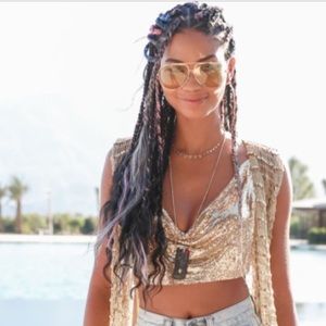 As seen on celebs Paris Hilton, Kendall Jenner, Bebe Rexa, Amrezy etc. New ROSE GOLD chain mesh metal disco backless deep plunge top. Chain attachment around back and around neck. Can be worn on a night out, at festival, on vacation or as a bikini top. *DOES NOT come with choker T line necklace or bra shown in one pic.** Purchased at a fashion boutique in London.
