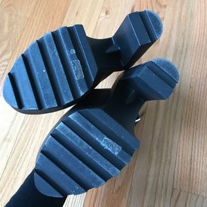 Doll House. Size 9. Worn twice. Make the butt and calves look hella good. Adjustable ankle straps. Ankle and big toe are exposed. Shoes don't squish feet. Soles are lightly padded. Has an airy sound on the left shoe, when stepping/walking, but it's hardly noticeable. No visible signs of wear upon first glance.
