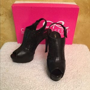 NEW REDUCED PRICE! Carlo Rossetti Women's Black Platform Sandals in sizes 7.5 & 8. Medium width. Features: silvertone buckle on the slingback adjustable strap adds flair & provides custom fit, geometric cutouts & stiletto shoe adds classy look for a modern style, open toe, padded footbed, rubber midsole & outsole, 5" stiletto heel-1 1/4" platform. Easy care-wipe clean. This is a NWT in box never before worn item. No trades please. Thanks for visiting my closet!