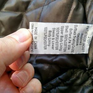 Oilskin jacket from Outback TC. Heavy duty for those long cold days outside, large size to fit over any amount of layers underneath. Oilskin will repel water, while the lining will keep you warm. Purchased up on the Alaskan Pipeline a few years ago.