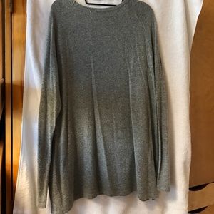 Very soft grey sweater. V-neck cut, great for layering or wearing alone. Long, cute, and cozy.