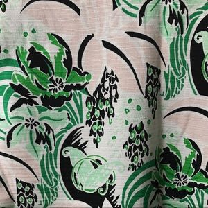 A verdant printed crop top layered over solid black lends rich, graphic dimension to this stretch-silk tank. Beautiful green palm print with hints of blush. 95% silk/5% elastane. Slinky textured weave – super soft. Dry clean.
