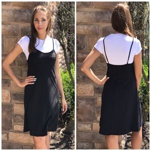 Perfect little black Weekender dress 2 piece set. White TShirt and black skater dress. Made of of poly/cotton spandex blend. Size S, M, L. shirt & dress