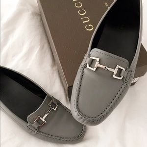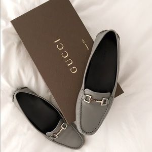 Authentic women's Gucci leather driving loafers in classic grey, size 6.5. They're soft, smooth leather. Worn once with socks. There is slight wear on the underside of the toe, but it's not seen while wearing. I do have the original box. Please no trades, and don't comment asking me to email you. I'm open to reasonable offers, but please no lowballing. Available for the bundle discount, but bundle prices are firm.