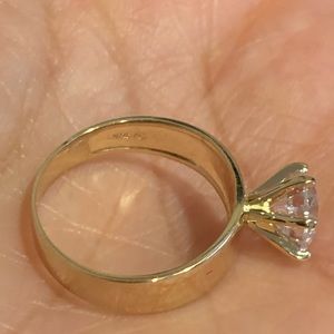 Solid 14k yellow gold Engagement Ring with 1.5ct Solitaire cubic zirconia Center stone and 4mm Band