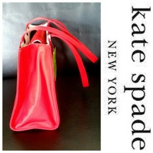 Authentic Kate Spade bag. Beautiful Red Nylon Exterior. The interior main compartment has zippered pocket. Beautiful beige & black polka dots contrast nicely with the exterior. Approx size Width 11" Height 8". Lovely bag for the Kate Spade lovers. NWT. OFFERS WELCOME!!