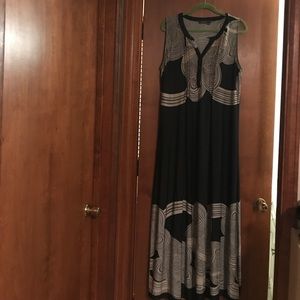 Black and Tan maxi dress with pretty pattern. Stretchy, classic piece. Washable!