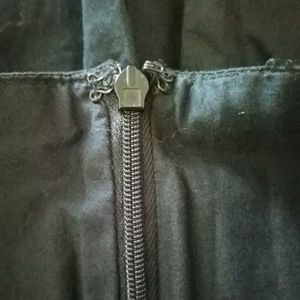 Shell is 100% cotton, polyester lined. Side zipper with hook and eye closure.