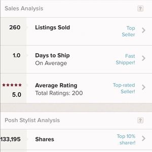 Thank you for the follow! 😊 I’m new to Poshmark and am trying to become a successful and reliable seller as well! I see you’ve done quite well for yourself, great job! Any tips for me to become a top seller as well? :) 👍🏼