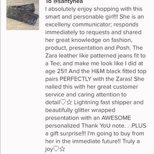 Shop with confidence in my closet , I'm only selling pieces I love too, all items are new or like new or in a great shape, I try to describe them at my best despite my broken English, i take great care of them in a smoke free home . I also love the fact Posh is a social network so don't hesitate to engage with me and I'll be happy to help every time I can 😘