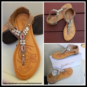 EMBELLISHED JEWELED GLADIATOR FLATS SANDALS