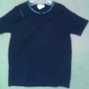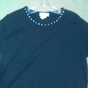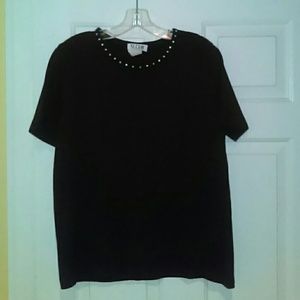 Black shirt sleeve top with bling on front of neckline. Cotton knit...Very comfortable and easy to care for. PRICE IS FIRM..