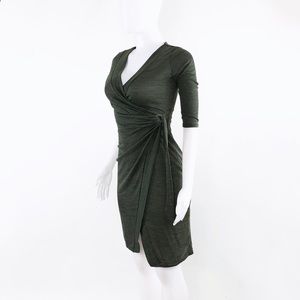 • Olive heathered knit wrapover dress